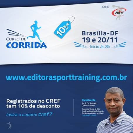 Curso de Corrida que será realizado em Brasília, nos dias 19 e 20/11, com o Prof. Dr. Antonio Carlos Gomes, com o apoio do CREF7.